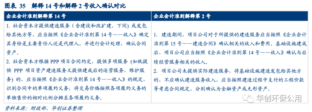 解釋14號擴大了確認建造收入的范圍。解釋2號規(guī)定對于實際提供建造服務的部分,可確認建造收入而對于未實際提供建造服務(即發(fā)包給其他方)的部分確認為金融資產或無形資產;解釋14號則規(guī)定即使企業(yè)不提供實際建造服務,仍然可以確認建造收入(主要責任人:按對價總額確認收入;代理人:扣除支付給其他方的金額后確認收入)。我們認為該會計準則的變更是2021年部分環(huán)保上市公司凈利潤增速低于營收增速的原因之一(多確認了毛利率較低的工程業(yè)務收入)。