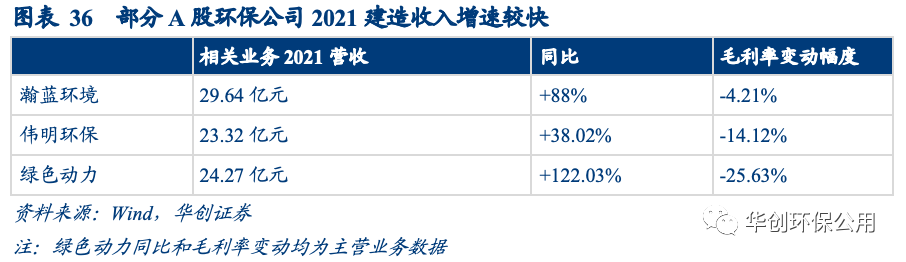 A股主流垃圾焚燒企業(yè)建造收入均出現不同幅度的增長。瀚藍環(huán)境2021年度工程與裝備業(yè)務營收大幅增長88%,由15.73億增至29.64億元(未剔除內部交易),但固廢業(yè)務的毛利率整體下降4.21pct;偉明環(huán)保設備、EPC及服務營收同比增長38.02%至23.32億元,但毛利率卻下降14.12%;綠色動力2021年前不確認建造收入和成本,會計政策變更后確認建造收入24.27億元,總營收大幅增加122.03%至50.57億元,但綜合毛利率卻下降25.63%。垃圾焚燒運營期毛利率遠高于建造毛利率,因此我們認為會計準則的變更在一定程度上可以解釋上述企業(yè)營收增加但毛利率下滑的原因。