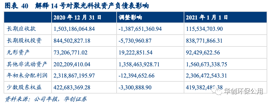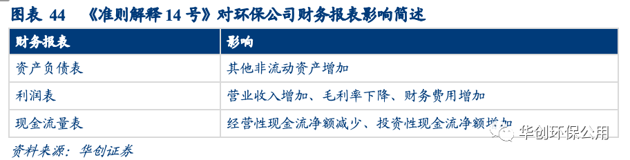 解釋14號要求對部分借款費用予以費用化處理。解釋2號中對價類型(無形資產模式、金融資產模式或混合模式)對借款費用資本化沒有影響而解釋14號明確借款費用的資本化對象是無形資產,對價類型是金融資產或者是混合模式下的金融資產部分,相關的借款費用均應予以費用化。我們認為該會計準則的變更是2021年部分環(huán)保上市公司財務費用上漲的原因之一。