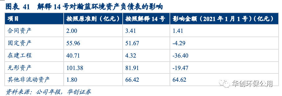 以瀚藍環(huán)境為例,公司主要采用 PPP 混合模式區(qū)分金融資產和無形資產核算,PPP 項目資產不作為固定資產核算,影響合同資產、其他非流動資產增加,在建工程、固定資產、無形資產減少。