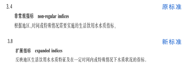 (2)修改了生活飲用水、集中式供水、小型集中式供水、分散式供水、常規(guī)指標的定義;