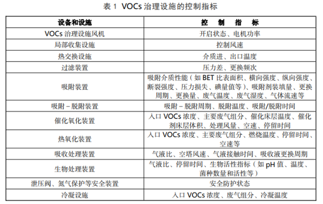 5.2.1 排污單位應根據(jù)生態(tài)環(huán)境保護要求以及相關的技術文件資料,在操作規(guī)程中設定VOCs 治理設施正常運行的控制指標,包括但不限于表 1 所列內(nèi)容