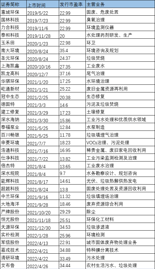 四領(lǐng)域發(fā)行市盈率比較 固廢企業(yè)被資本持續(xù)看好