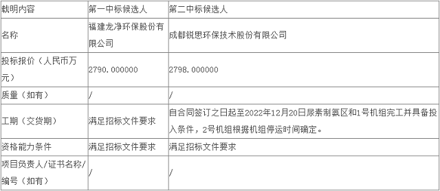 原標(biāo)題:龍凈環(huán)保預(yù)中標(biāo)煙氣脫硝還原劑尿素替代液氨改造EPC