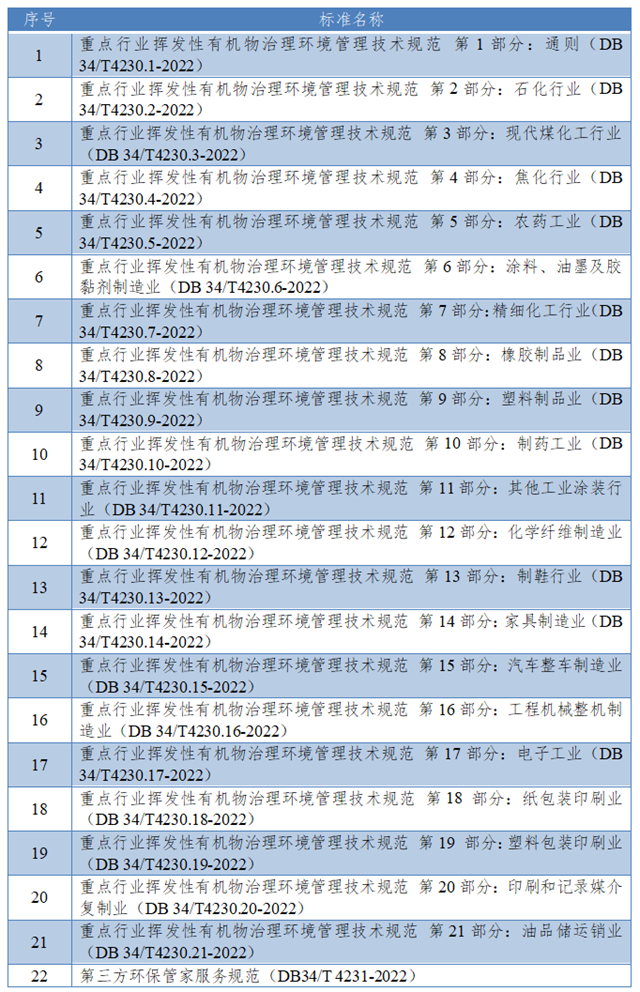 安徽省市場(chǎng)監(jiān)督管理局對(duì)《玻璃工業(yè)大氣污染物排放標(biāo)準(zhǔn)》《廢線(xiàn)路板綜合利用污染控制技術(shù)規(guī)范》《水資源論證區(qū)域評(píng)估技術(shù)導(dǎo)則》等3項(xiàng)地方標(biāo)準(zhǔn)公開(kāi)征求意見(jiàn);并發(fā)布22項(xiàng)生態(tài)環(huán)境標(biāo)準(zhǔn),具體見(jiàn)下表。