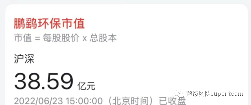 3) 看市值:截止2022年6月23日,鵬鷂環(huán)保市值為38.59億元