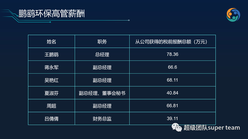 鵬鷂環(huán)保一直強(qiáng)調(diào)的是以人為本, 從鵬鷂環(huán)保的高管薪酬來看,如果鵬鷂把自己定義為一個(gè)區(qū)域型企業(yè),鵬鷂的高管薪酬絕對(duì)不算低,絕對(duì)給出了對(duì)高管人才的重視。而且這僅為上市公司公開數(shù)據(jù)。