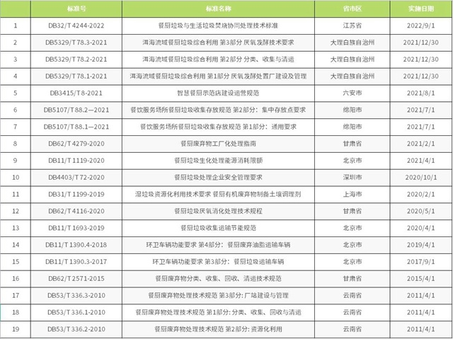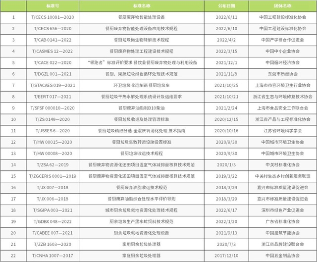 截至目前,已備案的餐廚垃圾相關標準有《餐廚垃圾車》QC/T 935-2013、《餐廚棄物處理機》JB/T 12342-2015、《餐廚廢棄物油水自動分離設備》CJ/T 478-2015、《餐廚垃圾自動分選系統(tǒng) 技術條件》JB/T 13166-2017、《餐廚廢棄物生產肥料中生物腐植酸含量測定方法》HG/T 5603-2019和《土壤調理劑及使用規(guī)程 餐廚廢物原料》NY/T 3935-2021。