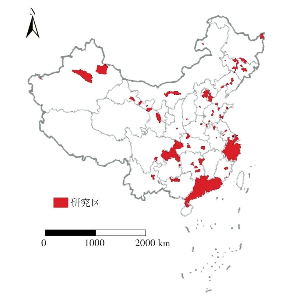 圖2 近十年文獻(xiàn)中我國土壤重金屬源解析研究所涉及的研究區(qū)域圖