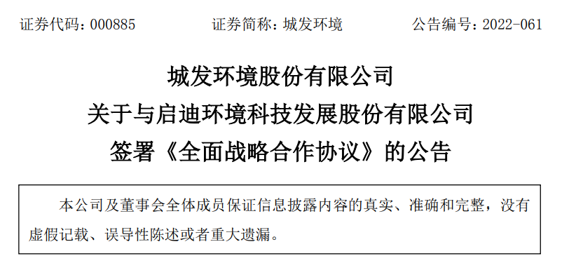 據(jù)公告顯示,終止本次重大資產(chǎn)重組的原因是城發(fā)環(huán)境自籌劃本次重大資產(chǎn)重組事項以來,嚴(yán)格按照相關(guān)法律法規(guī)的要求,與交易對方及其他相關(guān)雙方持續(xù)進(jìn)行磋商與研討,并根據(jù)磋商結(jié)果積極推進(jìn)相關(guān)盡職調(diào)查、審計、信息披露、內(nèi)部決策等工作。鑒于本次重大重組方案論證歷時較長,相關(guān)市場環(huán)境較本次交易籌劃之初發(fā)生較大變化。經(jīng)審慎研究分析,為切實維護(hù)城發(fā)環(huán)境及全體股東利益,經(jīng)與啟迪環(huán)境協(xié)商,雙方?jīng)Q定終止本次重大資產(chǎn)重組事項。根據(jù)法律法規(guī)及公司章程規(guī)定,經(jīng)雙方充分溝通及友好協(xié)商,城發(fā)環(huán)境董事會經(jīng)審慎研究后,依法履行了相關(guān)審議程序,終止本次重大資產(chǎn)重組。同時,另一則公告顯示,城發(fā)環(huán)境與啟迪環(huán)境簽署的戰(zhàn)略框架性協(xié)議。合作內(nèi)容、合作機(jī)制與合作期限等事項的具體實施尚存在不確定性,具體的項目合作協(xié)議或項目開展方案尚需雙方進(jìn)一步協(xié)商確定。公告顯示,基于城發(fā)環(huán)境在環(huán)保項目建設(shè)、區(qū)域市場拓展、環(huán)保技術(shù)研發(fā)及人員交流等方面與啟迪環(huán)境已經(jīng)開展了深入、全面的合作,具備良好的合作基礎(chǔ),為延續(xù)雙方友好合作關(guān)系、充分發(fā)揮雙方在環(huán)保、能源領(lǐng)域的發(fā)展優(yōu)勢,公司與啟迪環(huán)境共同簽署了《全面戰(zhàn)略合作協(xié)議》,以進(jìn)一步推動雙方交流合作。