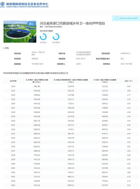 項目主要實施內(nèi)容包括蔚縣城鄉(xiāng)環(huán)衛(wèi)一體化服務(包括城區(qū)、鄉(xiāng)鎮(zhèn)環(huán)衛(wèi)服務兩部分),以及環(huán)衛(wèi)作業(yè)車輛和設施投入,合作范圍內(nèi)道路清掃保潔,灑水降塵,垃圾收集轉(zhuǎn)運,公廁維護,垃圾中轉(zhuǎn)站運營維護,特殊情況下的環(huán)衛(wèi)保障。項目合作范圍包括購置環(huán)衛(wèi)車輛、設施,新建數(shù)字化智慧環(huán)衛(wèi)系統(tǒng);道路綜合清掃保潔(含交通設施保潔)、道路綠化區(qū)域保潔、水域保潔(含護坡)、垃圾收運等服務。項目實施機構(gòu)負責項目推進過程中的協(xié)調(diào)審批工作,項目實施中的績效評價。項目公司負責項目的投融資、設備采購、更新改造和運營維護,由項目公司負責項目設施的日常運營服務和管理,包括設施的日常保養(yǎng)與提供環(huán)衛(wèi)保潔、垃圾收運服務。最高限價:將第一周期的可行性缺口補助金額5838.02萬元設定為最高投標限價。同時投標人需對可用性付費1087.15萬元和運維服務費5556.72萬元作為限價進行報價,中標價即可行性缺口補助按以下公式進行計算。可行性缺口補助=可行性付費+運維服務費-805.84萬元。本項目合作期限設置為24年2個月。將運營前的車輛、設施購置設為項目建設期,建設期為2個月,運營期為24年。項目按8年一個周期循環(huán),第二周期和第三周期均需2個月進行車輛設備的購置,車輛設備購置不影響項目的正常運營,因此第二周期和第三周期的建設期同時為項目的運營期。