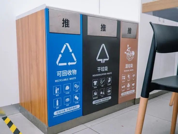沒(méi)吃完的:吃剩的食物——倒進(jìn)濕垃圾桶;飯盒&筷子&勺子——扔進(jìn)干垃圾桶