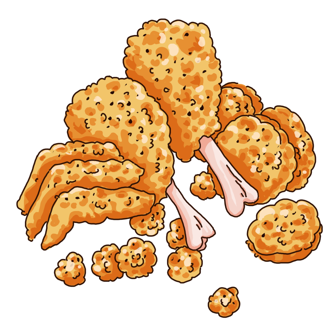 沒(méi)吃完的:雞腿&雞翅——扔進(jìn)濕垃圾;包裝紙——扔進(jìn)干垃圾桶