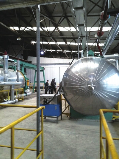 進(jìn)入廠區(qū),現(xiàn)代化的廠房、辦公樓和景觀綠化,似乎和餐廚垃圾處理工廠不相符。更讓人意外的是,從設(shè)有辦公、實驗、生產(chǎn)控制中心、會議室、生產(chǎn)流程演示、產(chǎn)品成列等功能的現(xiàn)代化辦公樓出來后,走進(jìn)生產(chǎn)車間,除了可見4個大型餐廚垃圾喂料口外(即餐廚垃圾運(yùn)輸車傾倒口),全是大型箱體、罐體,以及各種粗細(xì)的管子相連,一道道工序?qū)崿F(xiàn)了自動化,看不見一點(diǎn)餐廚垃圾,這里像一座現(xiàn)代化的啤酒車間?!巴耆珜崿F(xiàn)了自動化。”
