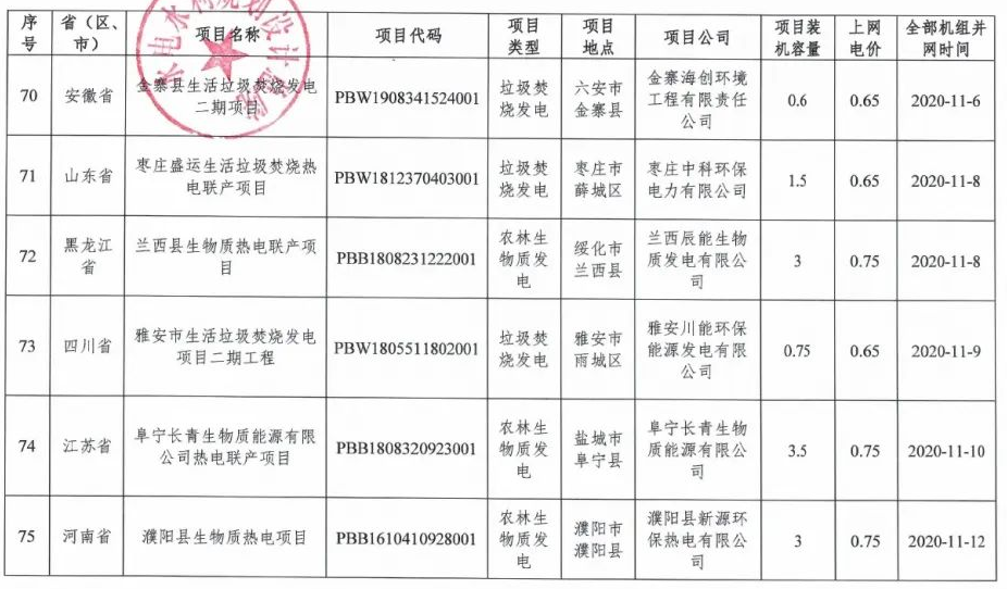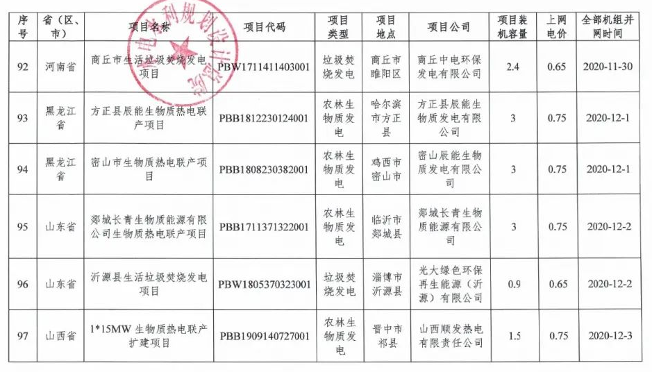根據(jù)《國家發(fā)展改革委 財(cái)政部 國家能源局關(guān)于印發(fā)〈2021年生物質(zhì)發(fā)電項(xiàng)目建設(shè)工作方案〉的通知》(發(fā)改能源〔2021〕1190號)、《國家可再生能源信息管理中心關(guān)于反饋納入2021年生物質(zhì)發(fā)電中央補(bǔ)貼非競爭配置項(xiàng)目名單的函》(再生能信息函〔2022〕4號)、《國家可再生能源信息管理中心關(guān)于明確擬納入2021年生物質(zhì)發(fā)電中央補(bǔ)貼項(xiàng)目信息的復(fù)函》(再生能信息函〔2022〕8號)等文件要求,現(xiàn)將國家電網(wǎng)有限公司經(jīng)營區(qū)擬納入2021年生物質(zhì)發(fā)電中央補(bǔ)貼非競爭配置項(xiàng)目名單予以公示(詳見附件)。