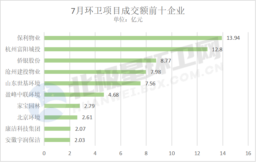 最終,保利物業(yè)、杭州富陽(yáng)城投、僑銀股份、滄州建投物業(yè)、世基環(huán)境、盈峰環(huán)境、家寶園林、北京環(huán)境、康潔科技集團(tuán)、安徽宇潤(rùn)保潔沖進(jìn)7月前十位排行榜。