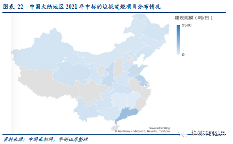 市場逐步向中西部和縣級下沉,小規(guī)模項目占比提升。2021年新增垃圾項目規(guī)模大于1000噸/日以上的總計15個,僅占五分之一;項目建設(shè)規(guī)模處于300~800噸/日的數(shù)量居多,共計50個。2021年,河北省成為釋放項目最多的省份(13個),廣東?。?0個)、湖南?。?個)、湖北?。?個)和廣西省(5個)分居二三四位。
