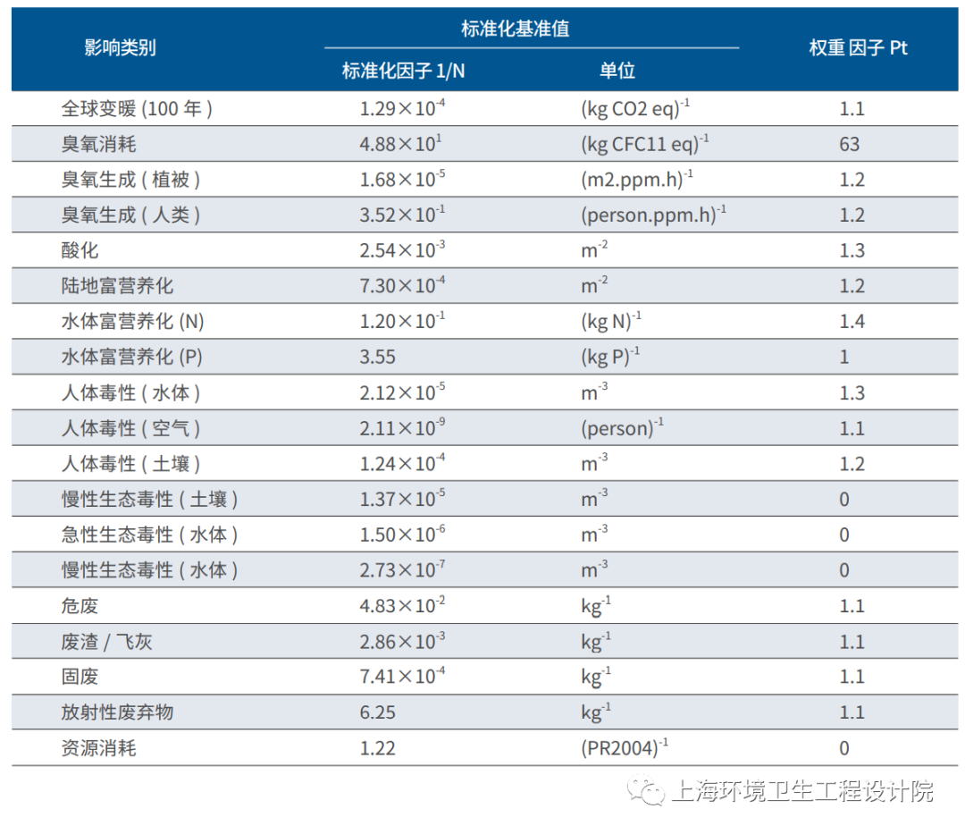 表1 EDIP2003方法的影響類別、標(biāo)準(zhǔn)化因子和權(quán)重因子