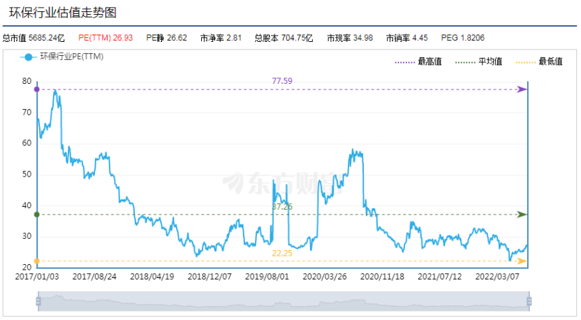 事實上,這是環(huán)保行業(yè)公司的久病。據統(tǒng)計2021年,176家上市環(huán)保企業(yè)中,有70家凈利潤同比下滑,下滑比例接近四成。不僅如此,市場對環(huán)保行業(yè)公司的估值明顯低于其他行業(yè)。在行業(yè)板塊估值排名中,環(huán)保行業(yè)整體估值26.93倍,排名倒數第22位。