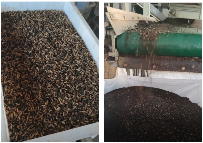 養(yǎng)殖分離系統(tǒng),是利用幼蟲(chóng)強(qiáng)大的取食和消化能力,將濕垃圾轉(zhuǎn)化為高質(zhì)量的動(dòng)物蛋白。規(guī)?;暮谒堤幚硇枰ㄔO(shè)專(zhuān)業(yè)的養(yǎng)殖車(chē)間,保持穩(wěn)定的溫度、濕度等外界條件,幼蟲(chóng)經(jīng)過(guò)6-8天的成長(zhǎng)后,及時(shí)采用蟲(chóng)料篩分設(shè)備進(jìn)行蟲(chóng)糞分離,最終得到鮮(干)蟲(chóng)和蟲(chóng)糞有機(jī)肥原料。