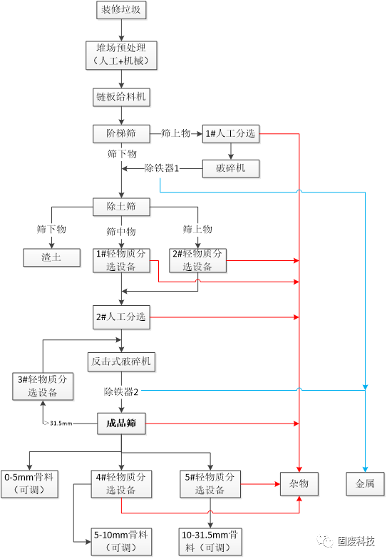 ▲圖一 裝修垃圾“先破后篩”預(yù)處理工藝參考圖