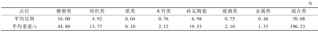 垃圾容重、含水率、熱值檢測結(jié)果見表1。垃圾組分、化學指標檢測結(jié)果見表2、3。
