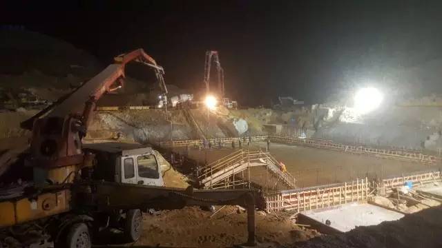(2017年1月17日,垃圾坑水泥澆筑連夜施工。)