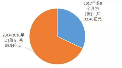 圖3 2014年至2017年9月危廢并購(gòu)交易規(guī)模-并購(gòu)方統(tǒng)計(jì)圖