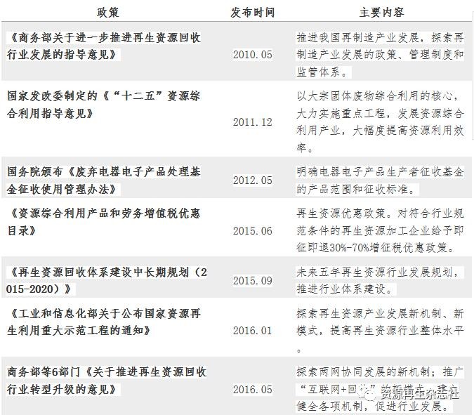再生資源回收利用的政策梳理