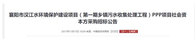 一、項目名稱:襄陽市漢江水環(huán)境保護建設項目(第一期鄉(xiāng)鎮(zhèn)污水收集處理工程)PPP項目社會資本方采購