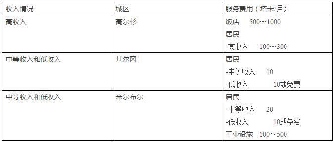 達(dá)卡市廢物收運(yùn)的市場(chǎng)化價(jià)格(1人民幣約合13塔卡)