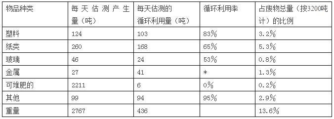 *由于數(shù)據(jù)采集時(shí),將市內(nèi)工廠對(duì)從市外運(yùn)送來(lái)的金屬進(jìn)行的循環(huán)利用計(jì)算在內(nèi),所以循環(huán)利用量高于金屬?gòu)U物的產(chǎn)生量。