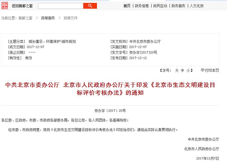 北京市生態(tài)文明建設(shè)目標(biāo)評(píng)價(jià)考核辦法