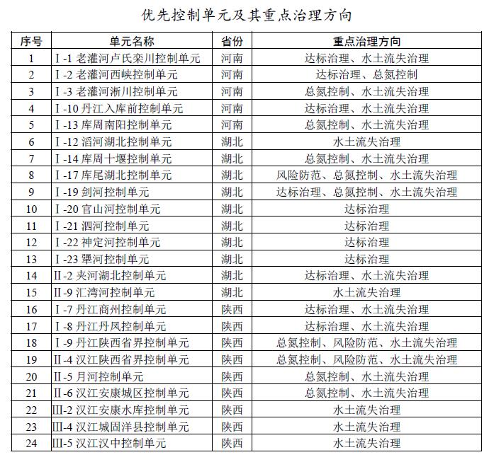 對43個控制單元逐一核定面積、水資源、污染源、人口、耕地、水土流失等情況,將未達到或未穩(wěn)定達到水質(zhì)目標、總氮濃度高、水土流失較重、環(huán)境風險較高的24個控制單元作為優(yōu)先控制單元,明確治理方向和治理任務(wù),加大治理力度。其中,達標治理類11個,水土流失治理類19個,總氮控制類10個,風險防范類3個(部分優(yōu)先控制單元涉及多個重點治理方向)。