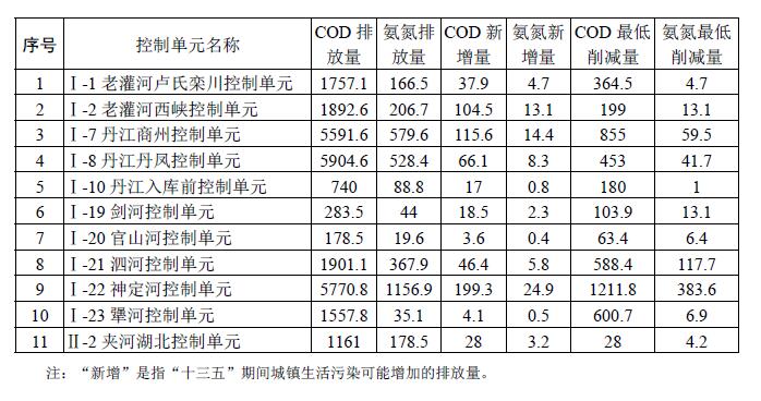 水質(zhì)不達標或不穩(wěn)定達標的11個優(yōu)先控制單元,“十三五”期間,污染物排放量削減不得低于下表要求,實現(xiàn)治理達標。達標治理優(yōu)先控制單元污染物削減任務(wù)表(單位:噸/年)