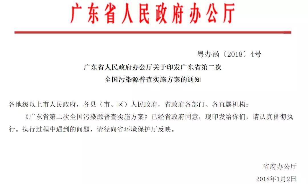 廣東省第二次全國污染源普查實(shí)施方案