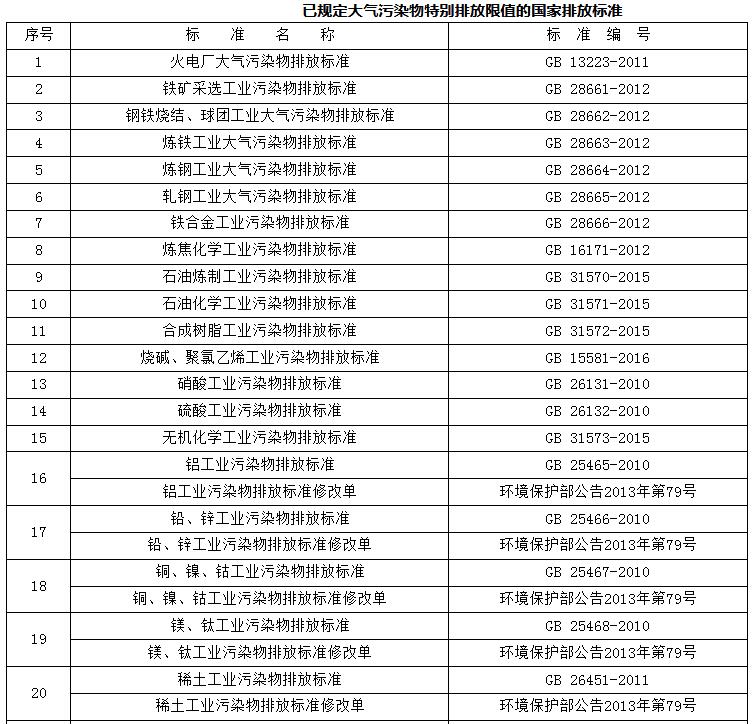 附件:已規(guī)定大氣污染物特別排放限值的國家排放標準