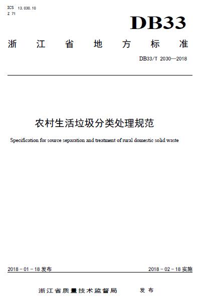 浙江地方標(biāo)準(zhǔn)《農(nóng)村生活垃圾分類處理規(guī)范》已經(jīng)發(fā)布。規(guī)范將于2018年2月18日實施。全文如下: