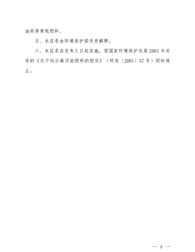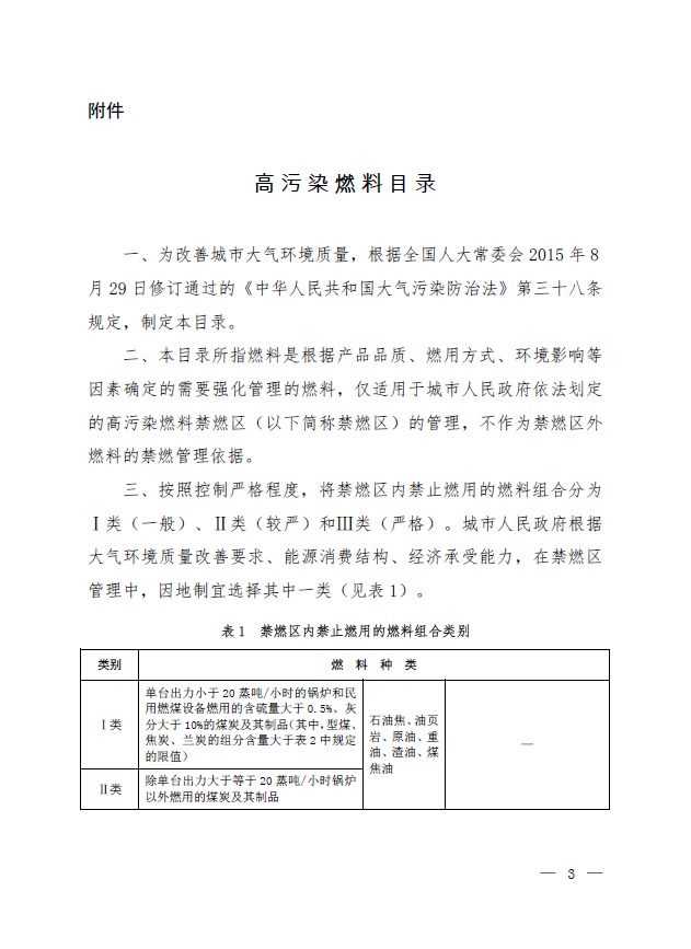關(guān)于發(fā)布《高污染燃料目錄》的通知