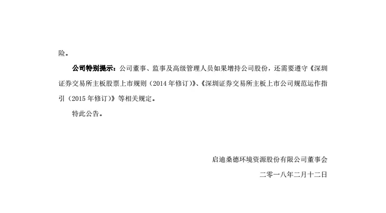 今2月11日,啟迪桑德發(fā)布一則重磅公告,基于對(duì)公司未來(lái)持續(xù)發(fā)展的信心以及對(duì)公司管理團(tuán)隊(duì)的信任,為維護(hù)市場(chǎng)穩(wěn)定,增強(qiáng)投資者信心,鼓勵(lì)長(zhǎng)期價(jià)值投資,文一波董事長(zhǎng)以個(gè)人名義向公司全體員工發(fā)出倡議書(shū)。