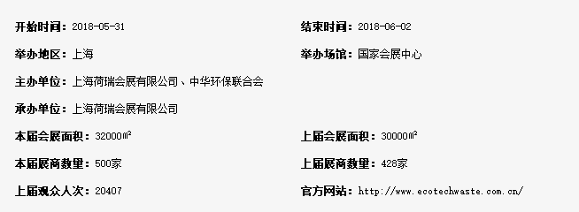 世環(huán)會系列展之一,一年一度的ECOTECHCHINA上海國際固廢氣展(以下簡稱固廢氣展)是由上海荷瑞會展有限公司、中華環(huán)保聯(lián)合會主辦;浙江省環(huán)保裝備行業(yè)協(xié)會作為組織機構;中華人民共和國住房與城鄉(xiāng)建設部、住建部建文化中心官方支持;中國環(huán)境文化促進會、上海市環(huán)境保護產(chǎn)業(yè)協(xié)會、江蘇省環(huán)境保護產(chǎn)業(yè)協(xié)會、山東省環(huán)境保護產(chǎn)業(yè)協(xié)會、安徽省環(huán)境保護產(chǎn)業(yè)協(xié)會、江西省環(huán)境保護產(chǎn)業(yè)協(xié)會等權威機構聯(lián)合指導的專業(yè)固廢處置和廢氣處理行業(yè)技術交流平臺。