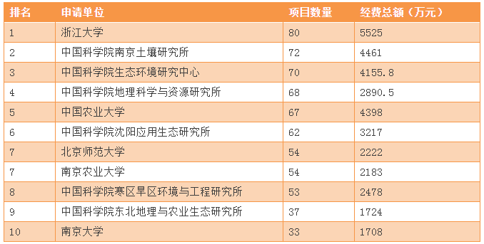 表7:國家自然科學(xué)基金項目申請機構(gòu)排名TOP10