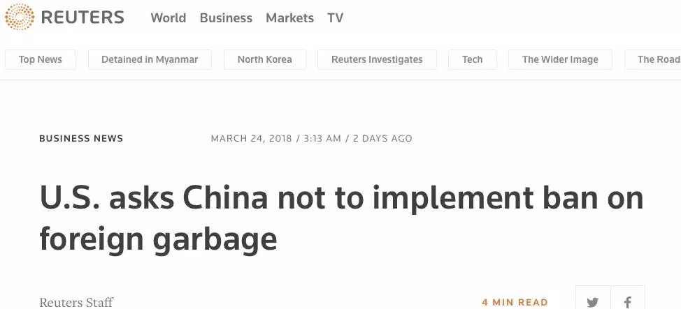 失去中國(guó)這一最大買(mǎi)家,不少美國(guó)垃圾回收公司努力尋找替代者??蓻](méi)有哪個(gè)國(guó)家能夠像中國(guó)市場(chǎng)那樣吸納如此大量的可回收垃圾。
