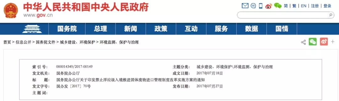 去年7月18日,國(guó)務(wù)院辦公廳發(fā)布《關(guān)于印發(fā)禁止洋垃圾入境 推進(jìn)固體廢物進(jìn)口管理制度改革實(shí)施方案的通知》,通知稱(chēng):