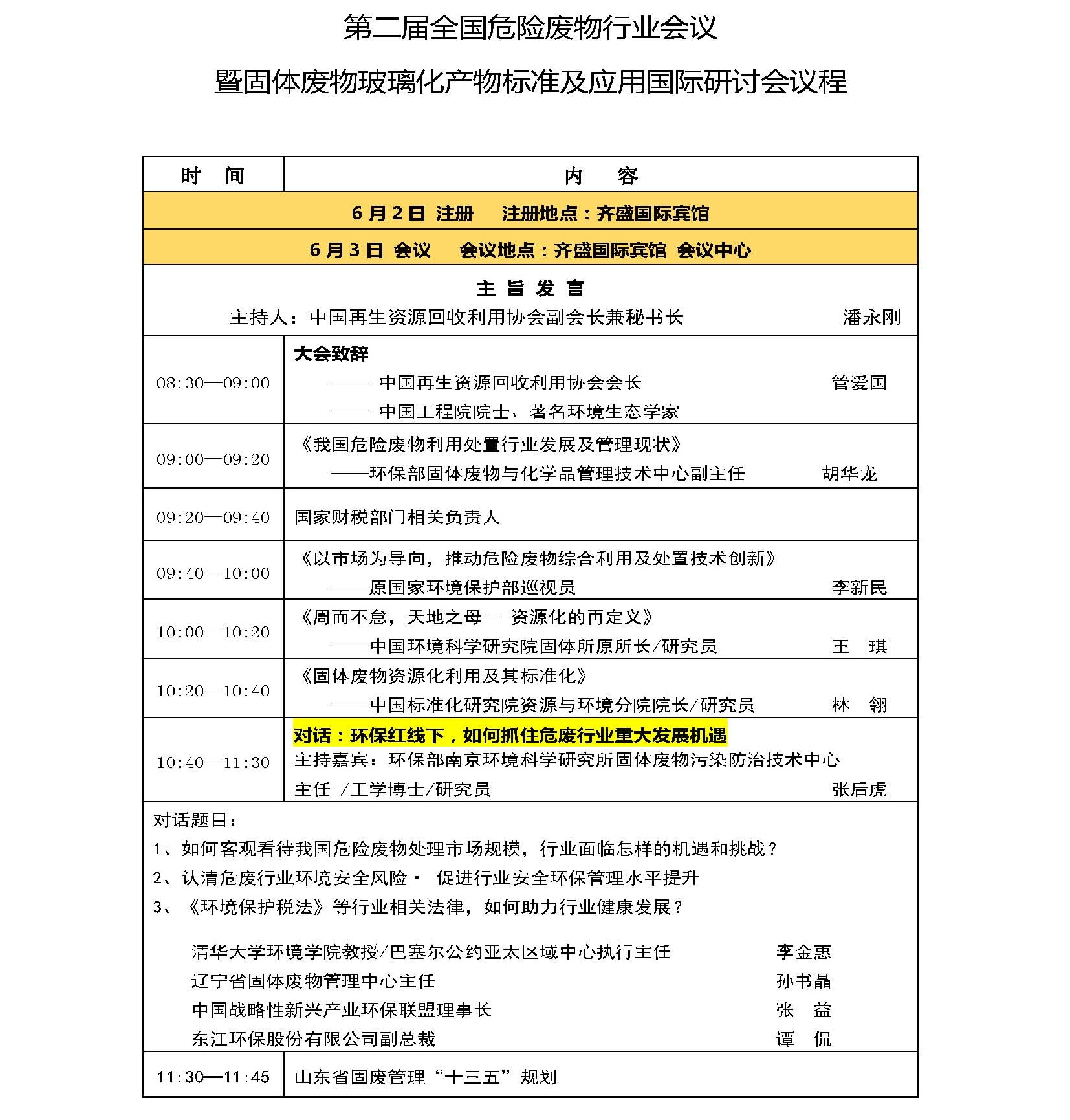 為了深入剖析國家產(chǎn)業(yè)政策對危廢行業(yè)的深遠(yuǎn)影響,理性判斷危廢市場投資方向,2018年6月3日,中再危廢和中國環(huán)聯(lián)在山東省淄博市舉辦“第二屆全國危險廢物行業(yè)會議暨固體廢物玻璃化產(chǎn)物標(biāo)準(zhǔn)及應(yīng)用國際研討會”。與國內(nèi)外專家及企業(yè)家,共同研討環(huán)保紅線下,如何通過經(jīng)營模式轉(zhuǎn)化和技術(shù)提升抓住危廢行業(yè)重大發(fā)展機(jī)遇。