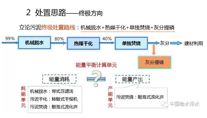 因此,最后只有去“燒”!但是,“燒”必須要經(jīng)過(guò)機(jī)械脫水,含水率99%的污泥首先降至80%;然后,再熱干化到40%以下。到40%就可以自持燃燒了。燒,但污泥焚燒千萬(wàn)不能放在水泥窯中同水泥一塊燒。這樣不對(duì)。會(huì)把磷就全部固定在水泥里,磷再也不能回用了!所以,要單獨(dú)燒。最多可以跟有機(jī)垃圾一塊燒。燒完以后,大量的磷都在灰分里面,需要提取。當(dāng)然了,大家知道,脫水、熱干化、單獨(dú)焚燒都是要輸入能量的,當(dāng)焚燒之后也會(huì)產(chǎn)生能量。現(xiàn)在我們有一個(gè)問(wèn)題,就是輸入能量和產(chǎn)生的能量能否達(dá)到平衡?我們需要計(jì)算一下,如果能打個(gè)平手那就是很了不起的事了。
