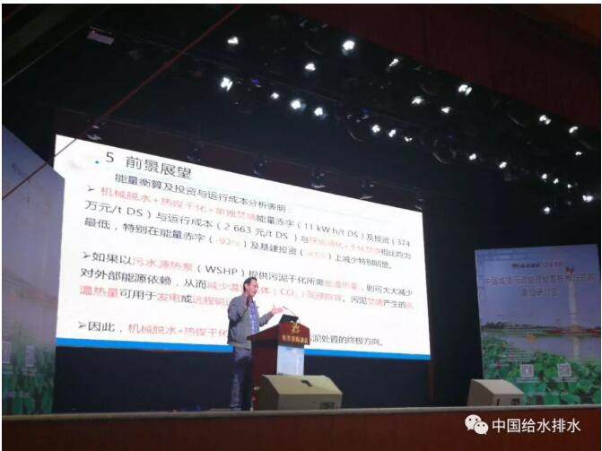 最后得到這樣一個(gè)結(jié)論,我們所推薦的工藝,機(jī)械脫水、熱媒干化、單獨(dú)焚燒,它在輸入能量節(jié)省、投資成本、運(yùn)行費(fèi)用方面都是最低的,特別是能量赤字可以減少27%,基建投資減少41%。這是大家最關(guān)心的,直接燒是不是成本高、能耗高?大家看看能耗還低了228度電。關(guān)鍵是能量輸入減少了27%,基建投資減少了41%。這個(gè)是非??捎^的。如果采用水源熱泵提供熱量,那么這個(gè)節(jié)省將更大,這個(gè)效益將是更加明顯?,F(xiàn)在主要是靠燒煤、燒油提供化石能量。前天早上我看到一個(gè)消息,美國(guó)紐約一個(gè)著名律師、生態(tài)活動(dòng)家在紐約一公園焚燒自殺了,什么原因?他就是以他的死來(lái)抗議人類(lèi)過(guò)多依賴使用化石燃料對(duì)生態(tài)造成嚴(yán)重破壞,以他的死來(lái)警告人類(lèi)。所以我們?cè)谧囊矐?yīng)該明白為什么。
