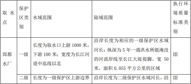 陸域一級保護(hù)區(qū):取水口側(cè)正常水位線以上200米范圍內(nèi)的陸域。陸域二級保護(hù)區(qū):一級保護(hù)區(qū)外不小于800米的區(qū)域?yàn)槎壉Wo(hù)區(qū)范圍。
