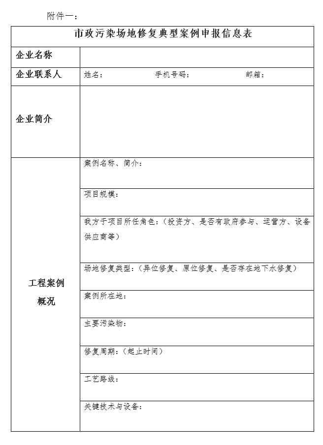 附件一:市政污染場地修復(fù)典型案例申報信息表