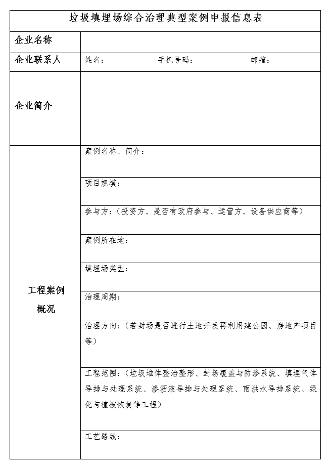 附件二:垃圾填埋場綜合治理典型案例申報信息表